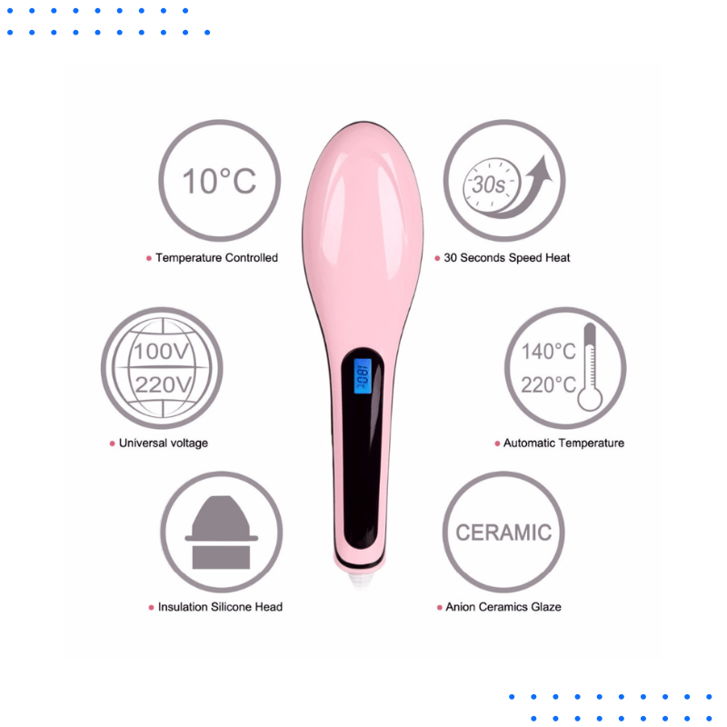 The Hair Straightening Brush with LED Display is a reliable and safe choice for daily hair care. It straightens fast, controls frizz, and leaves hair naturally shiny – perfect for home or travel.
